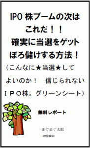 「IPOとは?」から始まって、どうや って当選を勝ち取るかを詳細にまで書いた有料のレポートです。